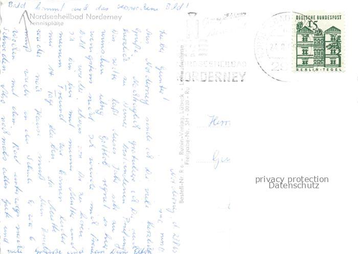 34144838 alte Postkarte NORDERNEY Nordseebad Niedersachsen Panorama mit Tennisplaetzen postalisch gelaufen Fliegeraufnahme Erhaltung siehe scans [FriedD77] KatCode: 11110003452020