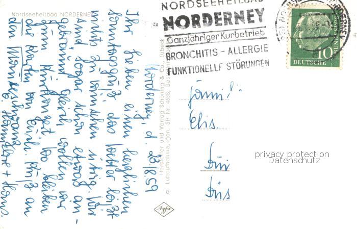 73764806 alte Postkarte Norderney Nordseebad Nordseeinsel postalisch gelaufen Fliegeraufnahme Erhaltung siehe scans [FriedD77] KatCode: 11110003452020
