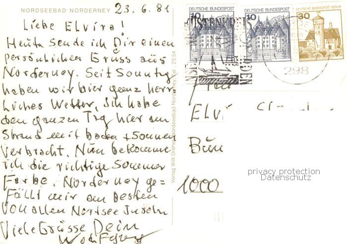 73767850 alte Postkarte Norderney Nordseebad Nordseeinsel Faehre postalisch gelaufen Fliegeraufnahme Erhaltung siehe scans [FriedD77] KatCode: 11110003452020