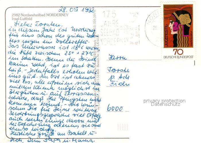 73163557 alte Postkarte Norderney Nordseebad Nordseeinsel Fliegeraufnahme postalisch gelaufen Erhaltung siehe scans [FriedD77] KatCode: 11110003452020