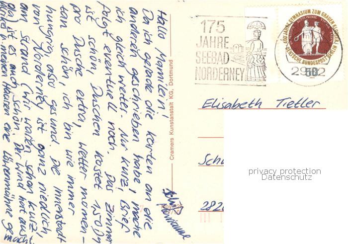 73781167 alte Postkarte Norderney Nordseebad Nordseeinsel Luftbild Hafen Strand Touristenbahn postalisch gelaufen Erhaltung siehe scans [FriedD77] KatCode: 11110003452020