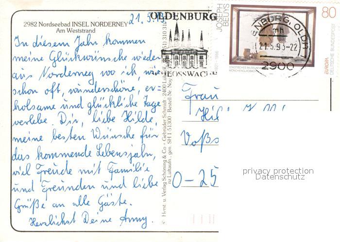 73713304 alte Postkarte Norderney Nordseebad Nordseeinsel Weststrand postalisch gelaufen Fliegeraufnahme Erhaltung siehe scans [FriedD77] KatCode: 11110003452020