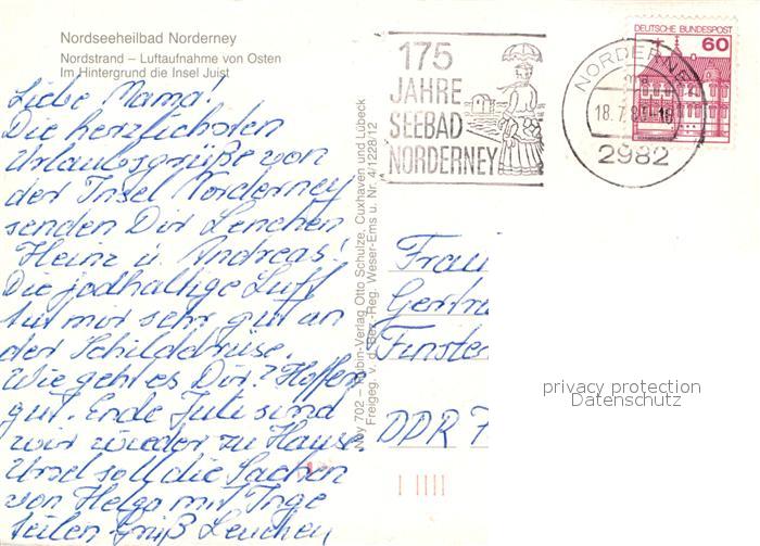 73005202 alte Postkarte Norderney Nordseebad Nordstrand Fliegeraufnahme postalisch gelaufen Erhaltung siehe scans [WerneD78] KatCode: 11110003452020