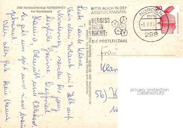 73303228 alte Postkarte Norderney Nordseebad Nordstrand Fliegeraufnahme postalisch gelaufen Erhaltung siehe scans [FriedD77] KatCode: 11110003452020