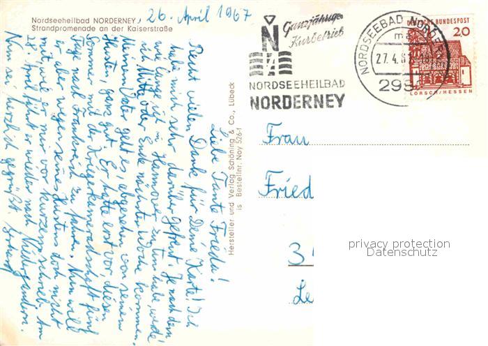 72896538 alte Postkarte Norderney Nordseebad Strandpromenade Kaiserstrasse postalisch gelaufen Erhaltung siehe scans [FriedD77] KatCode: 11110003452020