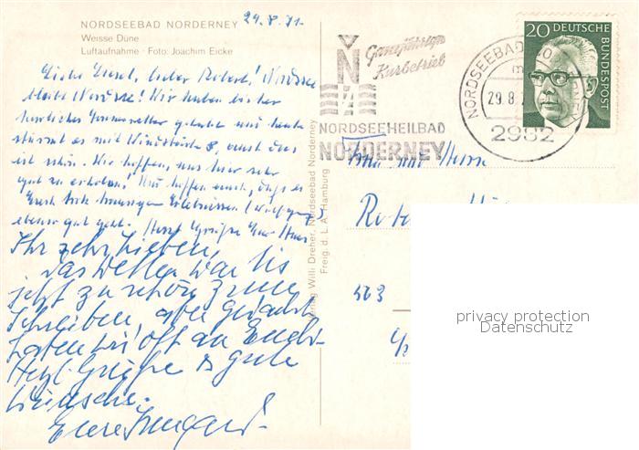 73813749 alte Postkarte Norderney Nordseebad Weisse Duene Fliegeraufnahme postalisch gelaufen Erhaltung siehe scans [WerneD78] KatCode: 11110003452020
