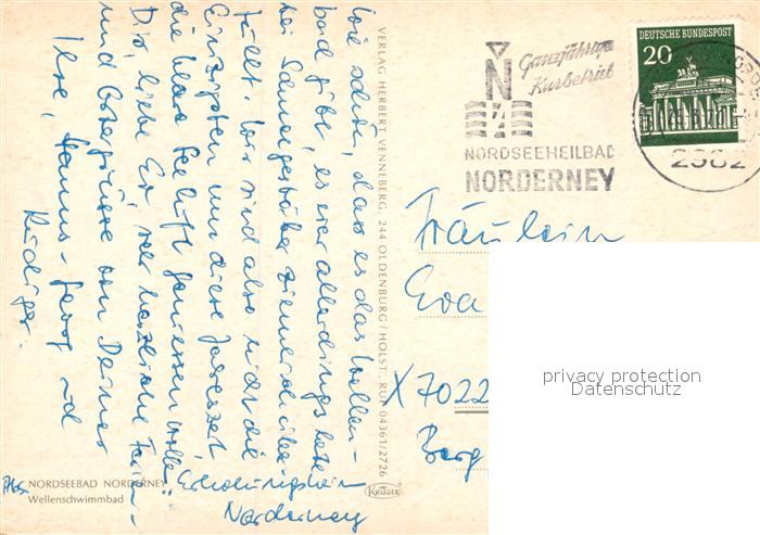 73065312 alte Postkarte Norderney Nordseebad Wellenschwimmbad postalisch gelaufen Erhaltung siehe scans [FriedD77] KatCode: 11110003452020