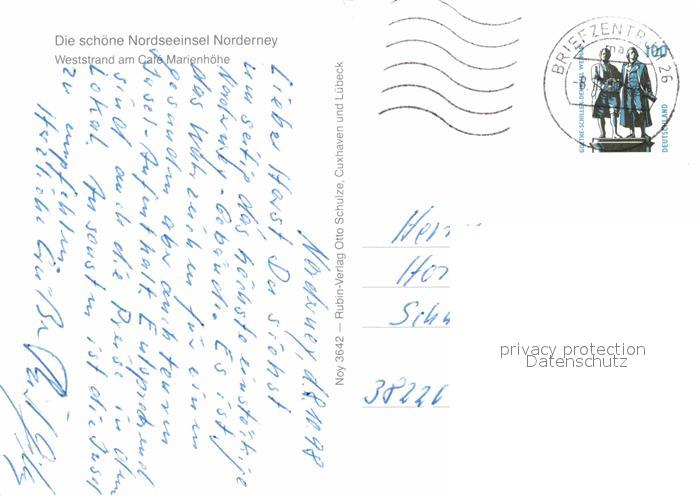 72673208 alte Postkarte Norderney Nordseebad Weststrand am Cafe Marienhoehe postalisch gelaufen Erhaltung siehe scans [WerneD78] KatCode: 11110003452020