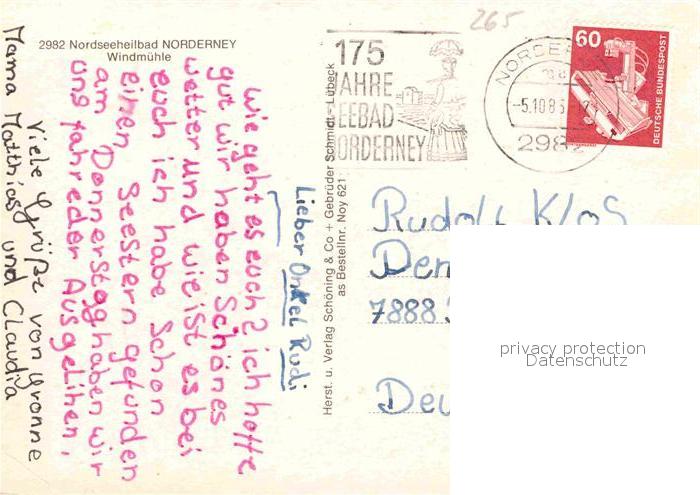 72670201 alte Postkarte Norderney Nordseebad Windmuehle postalisch gelaufen Erhaltung siehe scans [LiesaD40] KatCode: 11110003452020