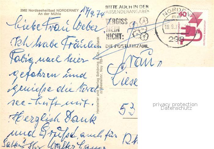 73159483 alte Postkarte Norderney Nordseebad Windmuehle Ostfriesische Teestube postalisch gelaufen Erhaltung siehe scans [FriedD77] KatCode: 11110003452020