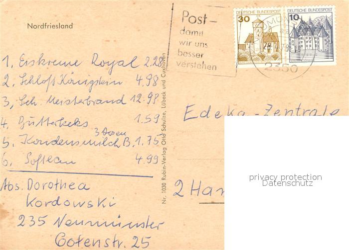 73306494 alte Postkarte Nordfriesland Landkarte der Region Nordseeinseln postalisch gelaufen Erhaltung siehe scans [FriedD77] KatCode: 11110001054039