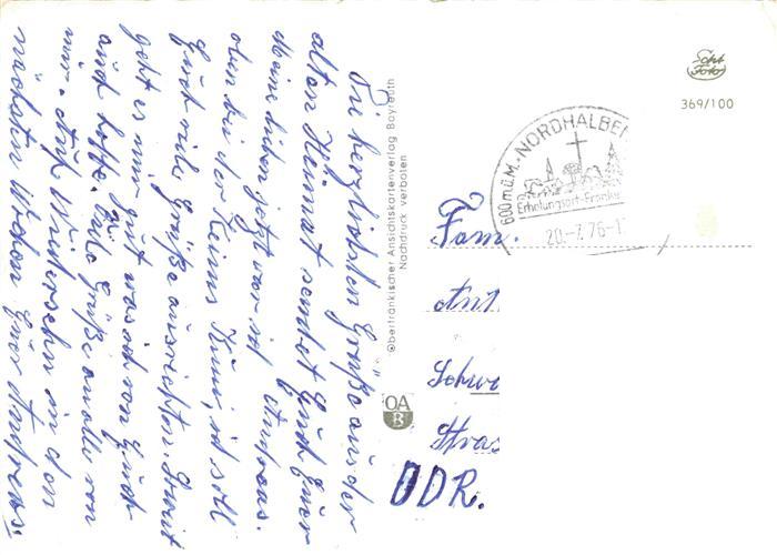 74014781 Nordhalben Kronach Bayern Panorama Kirche Kreuz postalisch gelaufen Erhaltung siehe scans [WerneD78] alte Postkarte Wern Katcode 11110009476159
