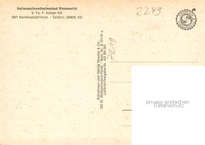 73643282 Nordhastedt Hallenwellenschwimmbad Riesewohld Fliegeraufnahme postalisch nicht gelaufen Erhaltung siehe scans [WerneD78] KatCode: 11110001051082