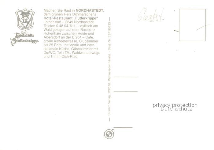 73641841 Nordhastedt Hotel Restaurant Futterkrippe Gastraeume Gartenterrasse postalisch nicht gelaufen Erhaltung siehe scans [WerneD78] KatCode: 11110001051082