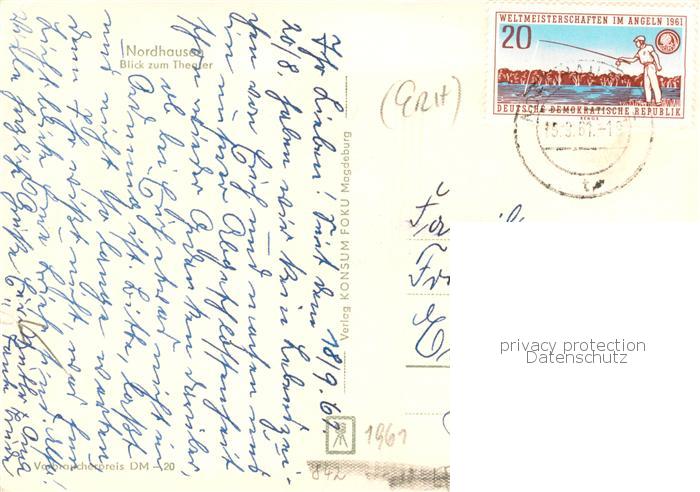 74052501 alte Postkarte Nordhausen Harz Blick zum Theater postalisch gelaufen Erhaltung siehe scans [FriedD77] KatCode: 11110016062041