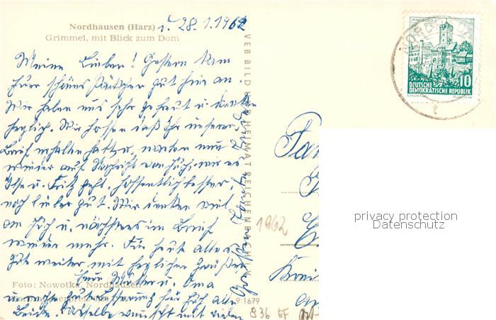 73833571 alte Postkarte Nordhausen Harz Grimmel mit Blick zum Dom postalisch gelaufen Erhaltung siehe scans [FriedD77] KatCode: 11110016062041