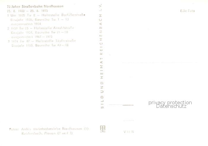 73845723 Nordhausen Harz Strassenbahn Haltestelle Barfuesserstrasse Haltestelle Arnoldstrasse Haltestelle Toepferstrasse postalisch nicht gelaufen Erhaltung siehe scans [WerneD78] KatCode: 11110016062041
