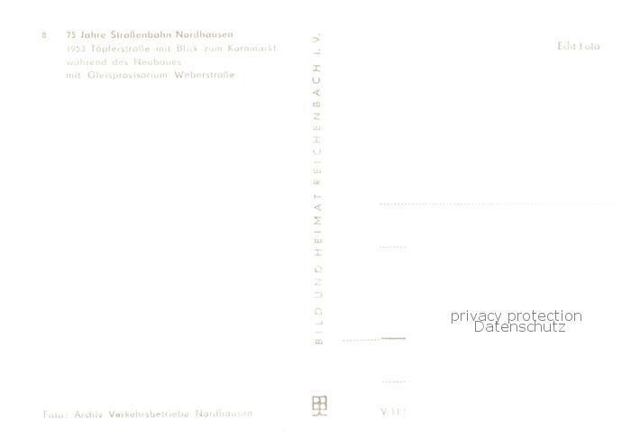 73845294 Nordhausen Harz Strassenbahn Toepferstrasse und Blick zum Kornmarkt mit Gleisprovisorium Weberstrasse postalisch nicht gelaufen Erhaltung siehe scans [FriedD77] KatCode: 11110016062041