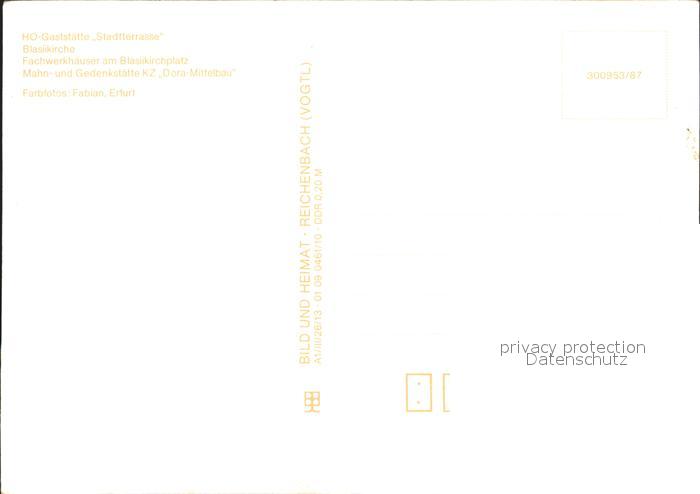 72262184 Nordhausen Thueringen HO Gaststaette Stadtterrasse Blasiikirche Fachwerkhaeuser KZ Gedenkstaette Mahnstaette postalisch nicht gelaufen Erhaltung siehe scans KatCode: 11110016062041