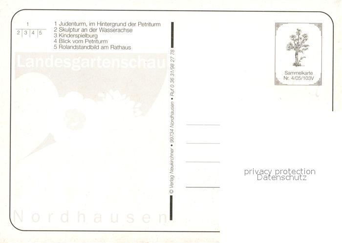 73179226 Nordhausen Thueringen Judenturm Petriturm Skulptur Kinderspielburg Rolandstandbild Statue am Rathaus postalisch nicht gelaufen Erhaltung siehe scans [FriedD77] KatCode: 11110016062041