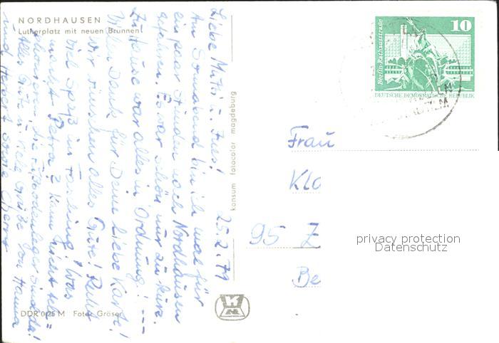 72091665 alte Postkarte Nordhausen Thueringen Lutherplatz mit neuem Brunnen postalisch gelaufen Erhaltung siehe scans KatCode: 11110016062041