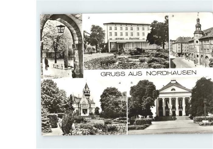 71966074 alte Postkarte Nordhausen Thueringen Mahnmal imperialistischen Krieg Gedaechtnis Bombenopfer HO Hotel Handelshof Albert Kuntz Platz Rathaus Theater postalisch gelaufen Erhaltung siehe scans KatCode: 11110016062041