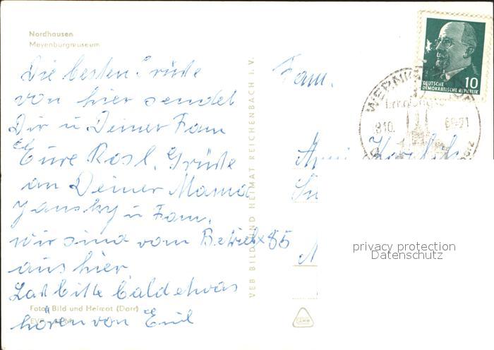 72043046 alte Postkarte Nordhausen Thueringen Meyenburgmuseum postalisch gelaufen Erhaltung siehe scans KatCode: 11110016062041