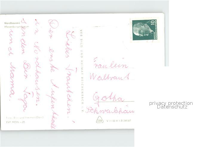72005580 alte Postkarte Nordhausen Thueringen Meyenburgmuseum postalisch gelaufen Erhaltung siehe scans KatCode: 11110016062041