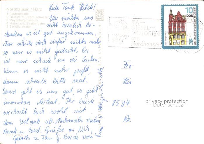72202694 Nordhausen Thueringen Rautenstrasse Barfuesserstrasse Historische Strassenbahn postalisch nicht gelaufen Erhaltung siehe scans Alte Ansichtskarte Postkarte Matt Katcode 11110016062041