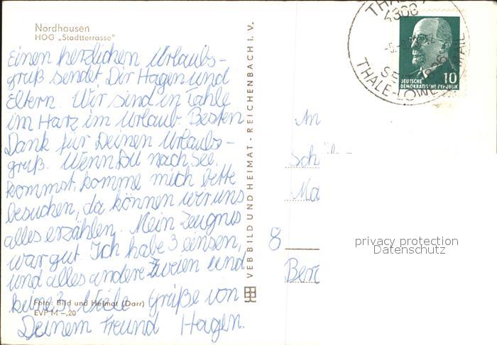 72405913 alte Postkarte Nordhausen Thueringen Restaurant Stadtterrasse postalisch gelaufen Erhaltung siehe scans KatCode: 11110016062041