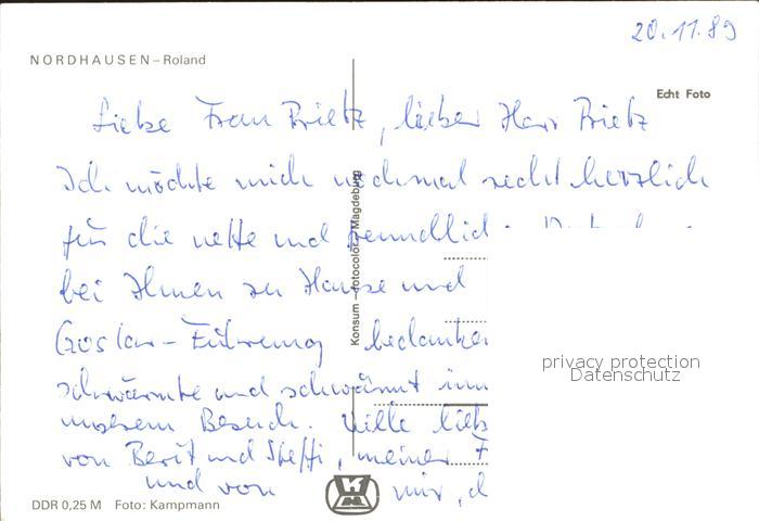 72327801 Nordhausen Thueringen Roland postalisch nicht gelaufen Erhaltung siehe scans KatCode: 11110016062041