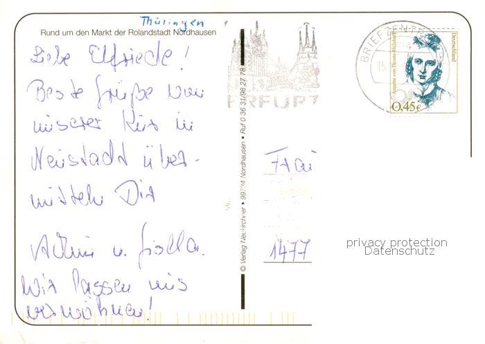 73758544 alte Postkarte Nordhausen Thueringen Rund um den Markt der Rolandstadt postalisch gelaufen Erhaltung siehe scans [FriedD77] KatCode: 11110016062041