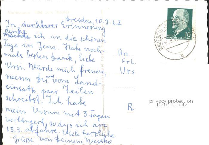 72293233 alte Postkarte Nordhausen Thueringen Theater postalisch gelaufen Erhaltung siehe scans KatCode: 11110016062041