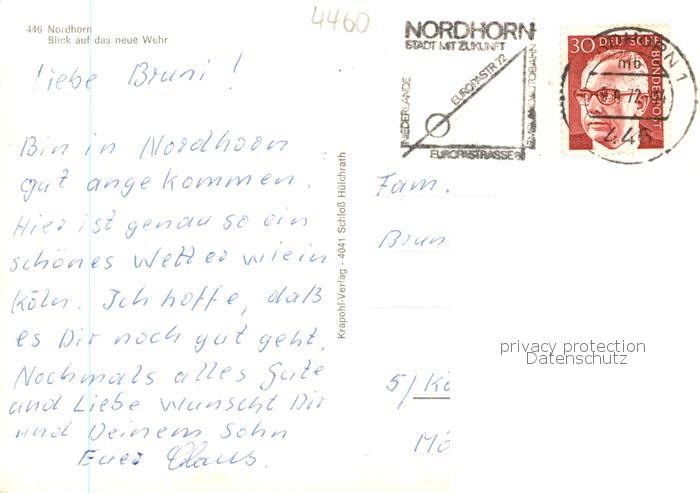 73870185 alte Postkarte Nordhorn Neues Wehr postalisch gelaufen Erhaltung siehe scans [WerneD78] KatCode: 11110003456015