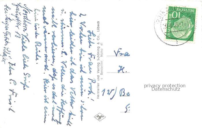 74153339 alte Postkarte Nordhorn Partie an der Vechte Gesamtansicht Krankenhaus Kirche Langemarckplatz Bahnhof Hauptstrasse Rathausplatz postalisch gelaufen Erhaltung siehe scans [FriedD77] KatCode: 11110003456015