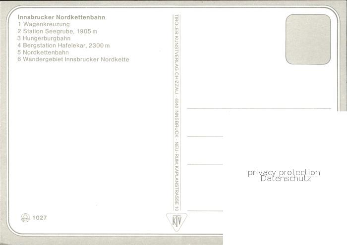 71907817 Nordkettenbahn Innsbruck Seilbahn Station Seegrube Bergstation Hafelekar Hungerburgbahn postalisch nicht gelaufen Erhaltung siehe scans KatCode: 11390332070101