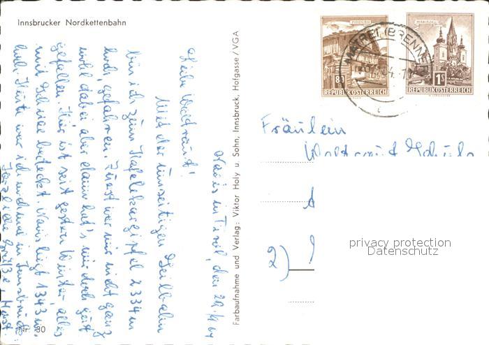 71907806 alte Postkarte Nordkettenbahn Innsbruck Seilbahn postalisch gelaufen Erhaltung siehe scans KatCode: 11390332070101