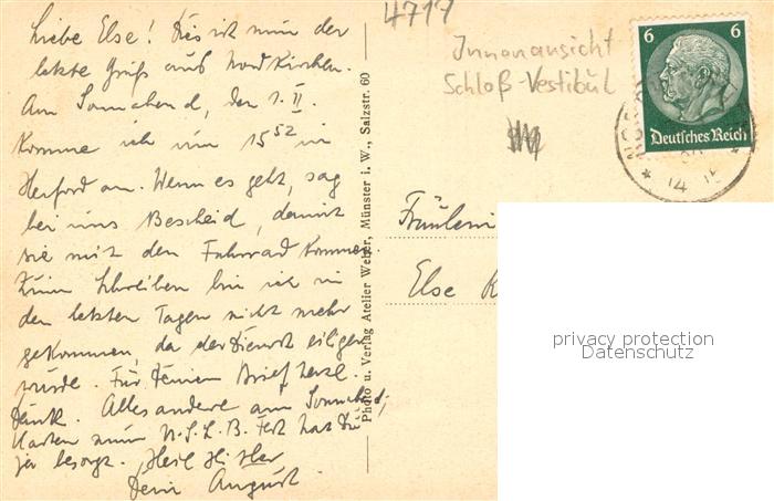 73689938 alte Postkarte Nordkirchen Posterholungsheim Schloss Vestibuel postalisch gelaufen Erhaltung siehe scans [FriedD77] KatCode: 11110005558028