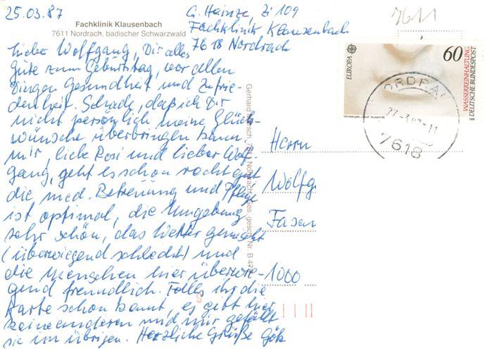 73928393 alte Postkarte Nordrach Fachklinik Klausenbach postalisch gelaufen Erhaltung siehe scans [FriedD77] KatCode: 11110008317085