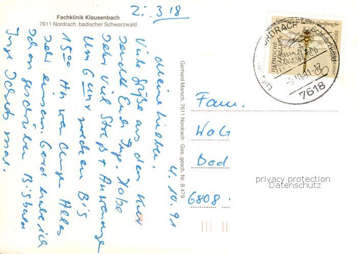 73717719 alte Postkarte Nordrach Fachklinik Klausenbach postalisch gelaufen Erhaltung siehe scans [WerneD78] KatCode: 11110008317085