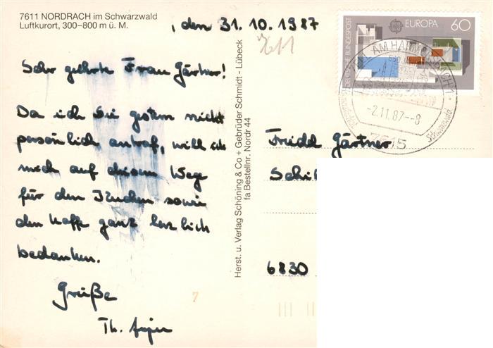 73928965 alte Postkarte Nordrach Fliegeraufnahme postalisch gelaufen Erhaltung siehe scans [FriedD77] KatCode: 11110008317085