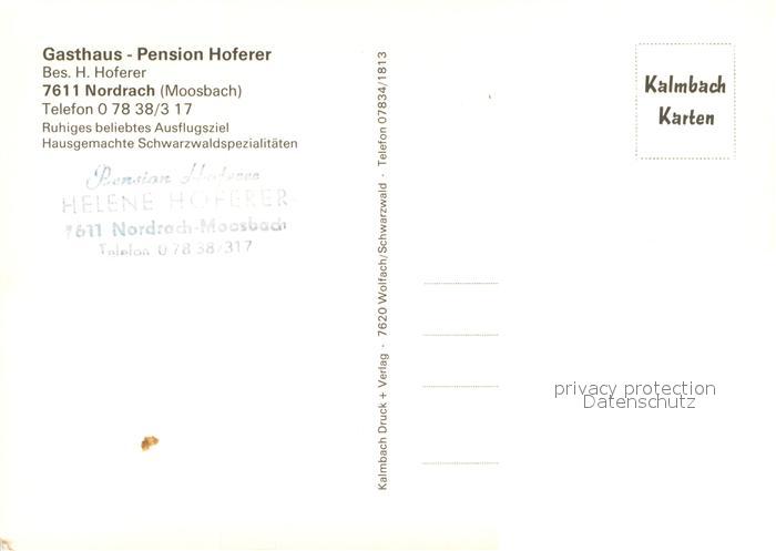 73648862 Nordrach Gasthaus Pension Hoferer im Schwarzwald postalisch nicht gelaufen Erhaltung siehe scans [FriedD77] KatCode: 11110008317085