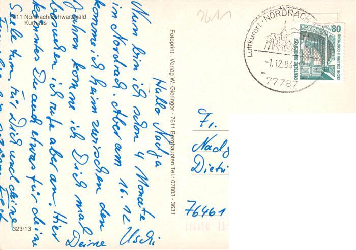 73928607 alte Postkarte Nordrach Kurhaus postalisch gelaufen Erhaltung siehe scans [FriedD77] KatCode: 11110008317085
