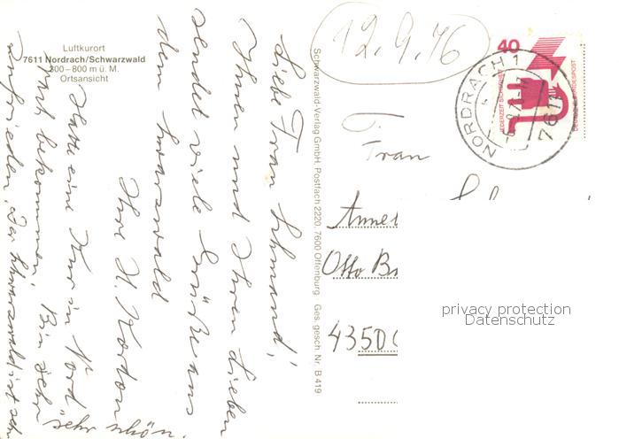73813729 alte Postkarte Nordrach Panorama postalisch gelaufen Erhaltung siehe scans [WerneD78] KatCode: 11110008317085