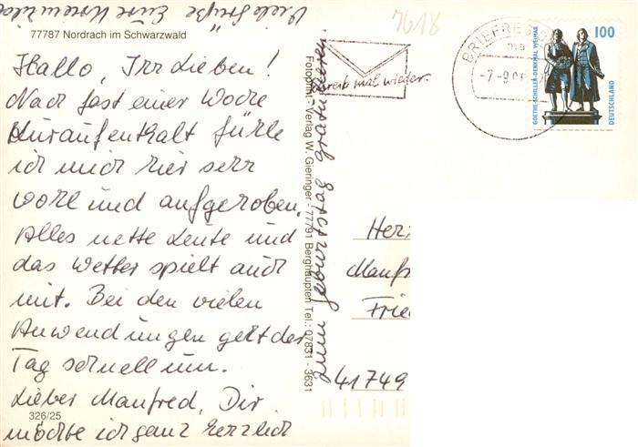 73930850 alte Postkarte Nordrach Panorama Gasthaus Park Rehaklinik postalisch gelaufen Erhaltung siehe scans [FriedD77] KatCode: 11110008317085