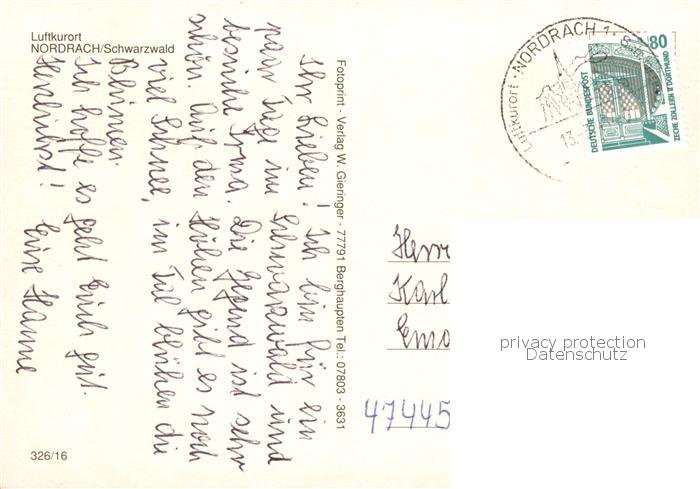 73842199 alte Postkarte Nordrach Panorama Kath Kirche St Ulrich St Marien Kurhaus postalisch gelaufen Erhaltung siehe scans [WerneD78] KatCode: 11110008317085