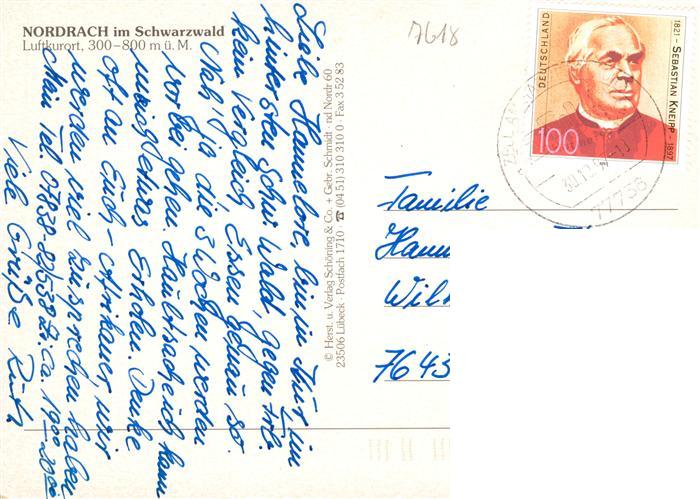 73930463 alte Postkarte Nordrach Panorama Luftkurort im Schwarzwald Kirche Hotel postalisch gelaufen Erhaltung siehe scans [FriedD77] KatCode: 11110008317085