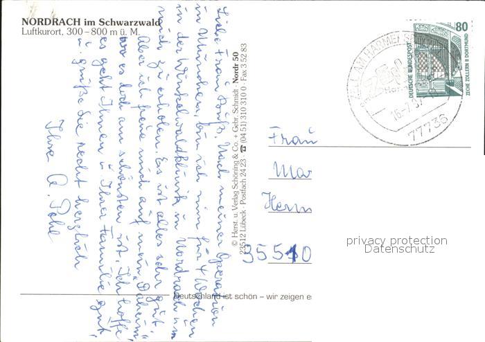 72417158 alte Postkarte Nordrach Rathaus Kirche Beheiztes Schwimmbad Liegewiese Hansjakob Halle postalisch gelaufen Erhaltung siehe scans KatCode: 11110008317085