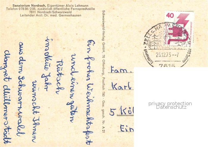 72854745 alte Postkarte Nordrach Sanatorium postalisch gelaufen Erhaltung siehe scans [AndreD76] KatCode: 11110008317085