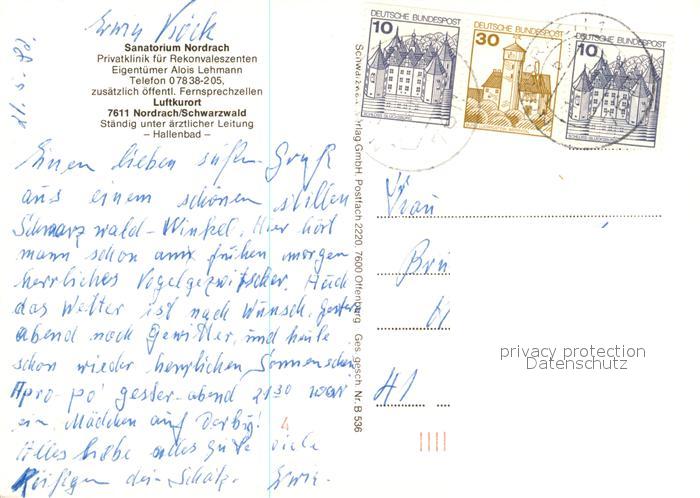 73100987 alte Postkarte Nordrach Sanatorium Nordrach postalisch gelaufen Erhaltung siehe scans [WerneD78] KatCode: 11110008317085